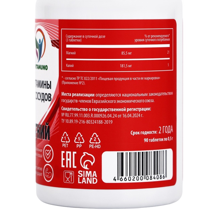 Цитрат калия, целлюлоза микрокристаллическая (носитель), оксид магния, поливинилпирролидон (носитель), кальциевая соль стеариновой кислоты (антислеживающий агент).