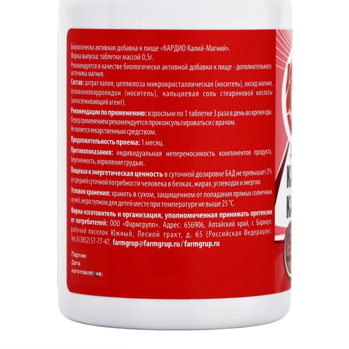 Способствует нормальной работе сердца, мышц и нервов, снятию спазмов и судорог.