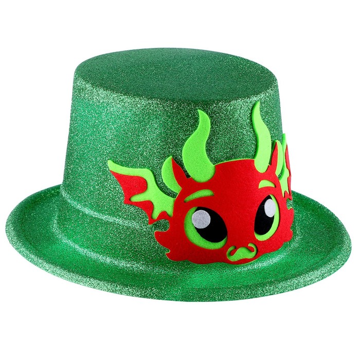 Эта карнавальная шляпа поможет создать яркий и запоминающийся образ на празднике. Шляпа выполнена из блестящего материала и украшена изображением красного дракона, что придаёт ей особую привлекательность.