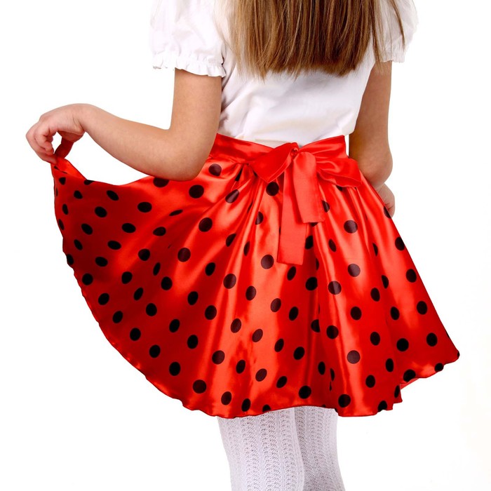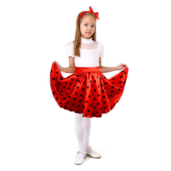Карнавальная юбка для вечеринки красная в чёрный горох, повязка, рост 122-128 см