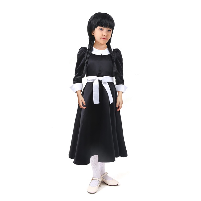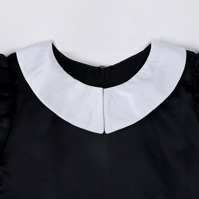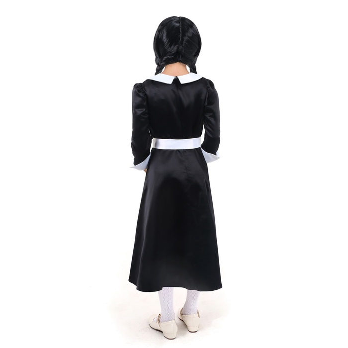 Карнавальное черное платье с белым воротником, атлас, п/э, размер 34, 134 см