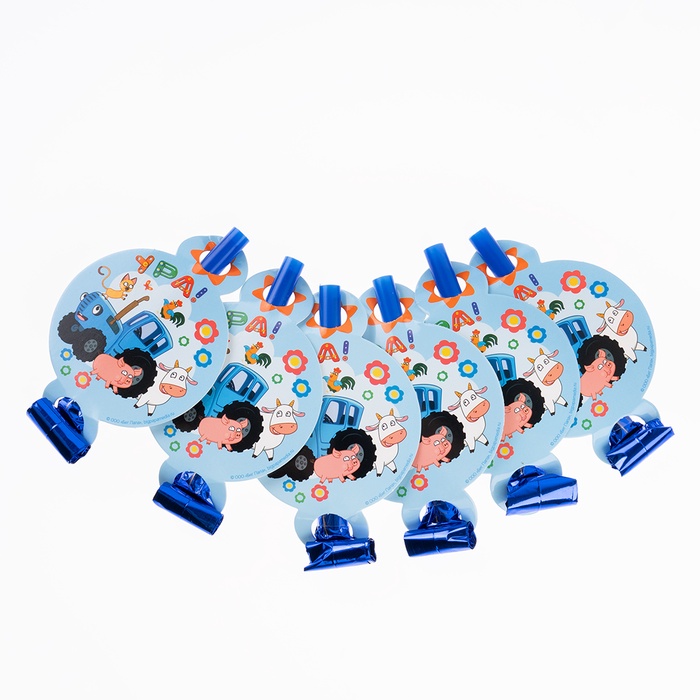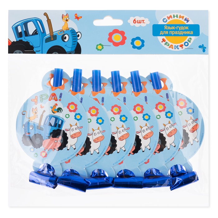 Карнавальные язычки гудки "Синий трактор". Веселое путешествие" 11 см, 6 шт.