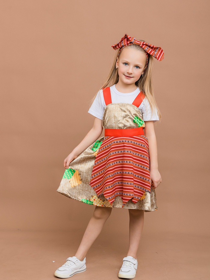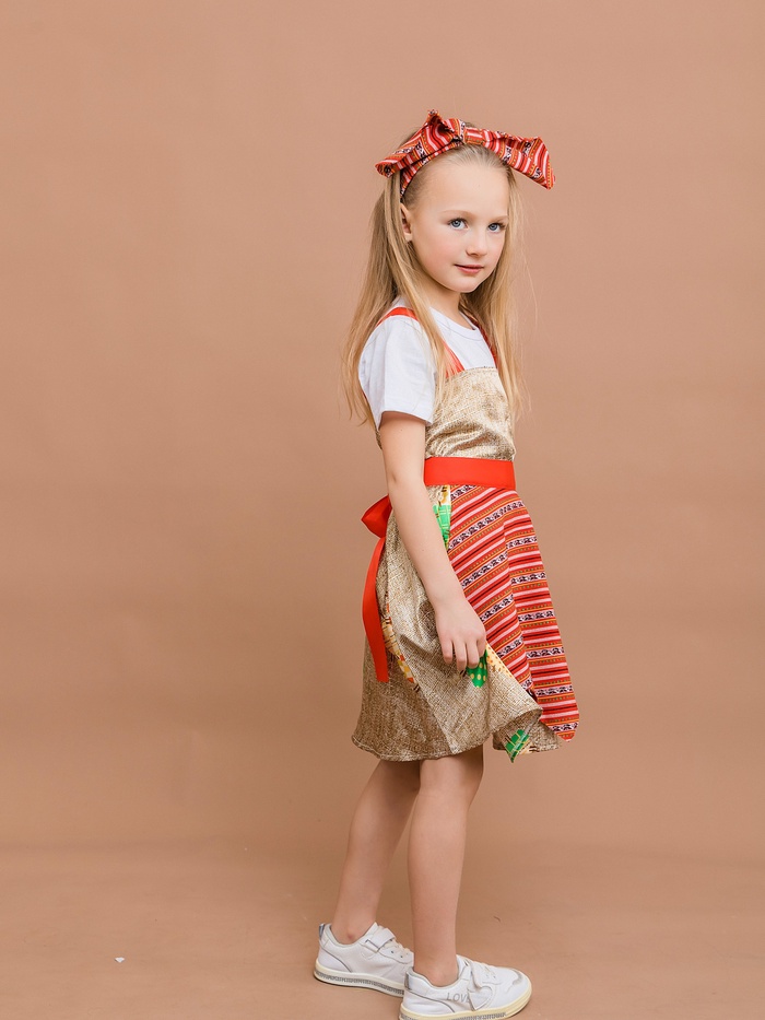 Карнавальный костюм «Бабка Ежка»: сарафан, фартук, бандана, р. 116
