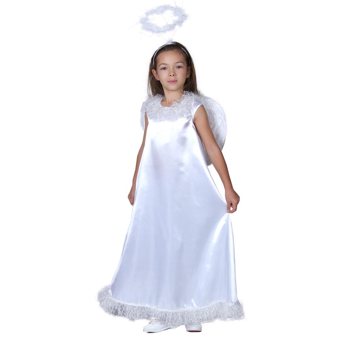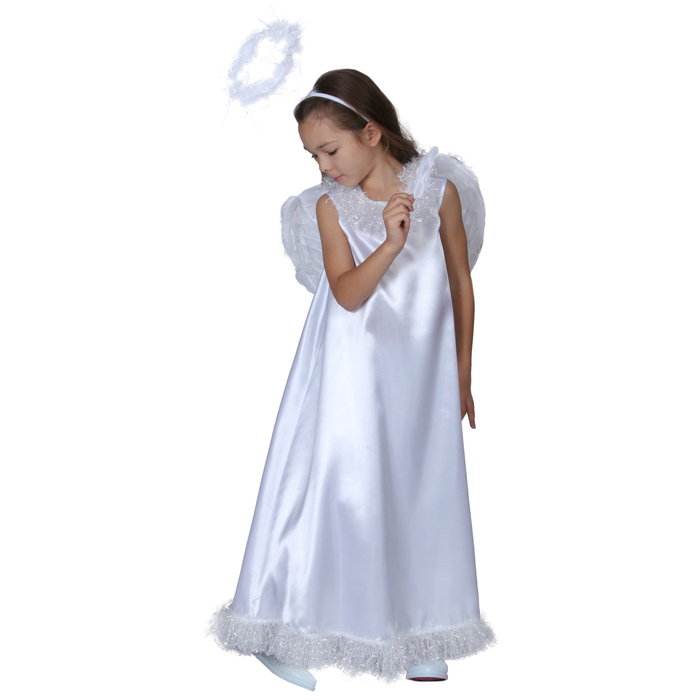 Карнавальный костюм «Белый ангел», нимб, платье, крылья, р-р 32, рост 122-128 см
