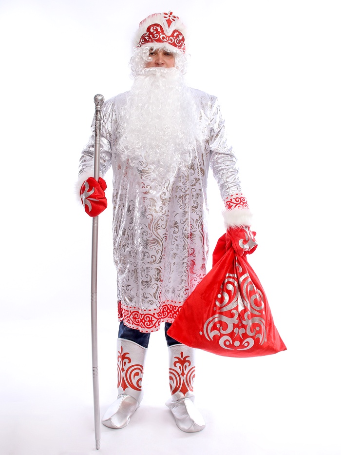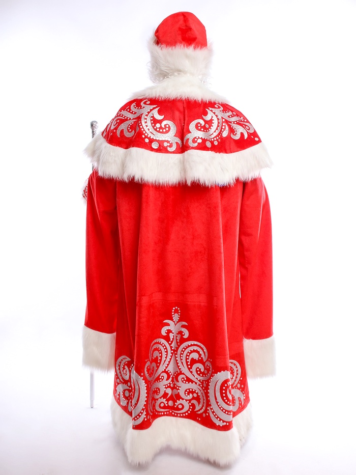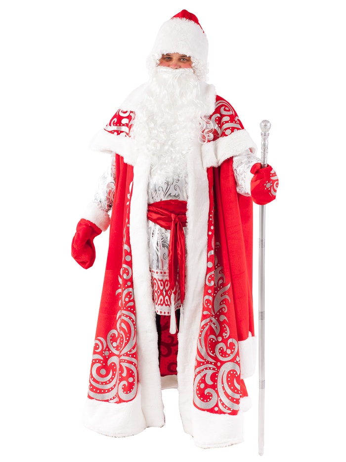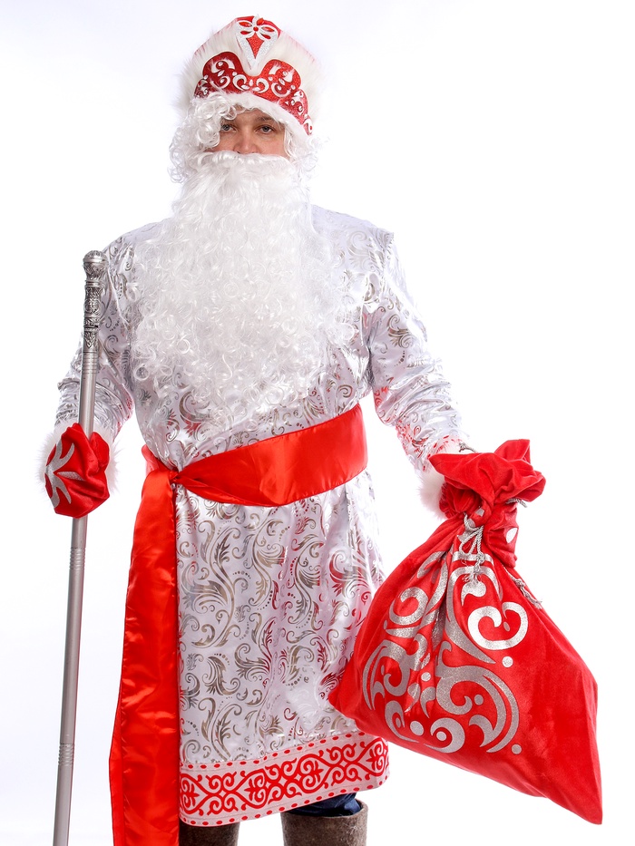 Карнавальный костюм "Дед Мороз Боярский (рубаха, шуба, шапка, варежки, мешок, парик, борода, посох)