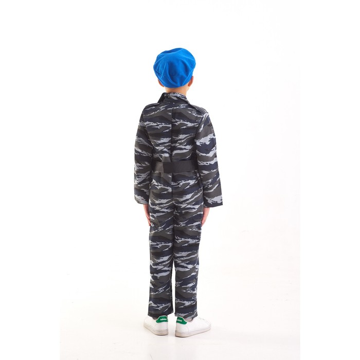 Карнавальный костюм «Десант», берет, комбинезон, пояс, 5-7 лет, рост 122-134 см отлично подойдёт к 23 Февраля, Дню Победы — любому военному празднику или театральной постановке, где ваш малыш исполнит роль отважного солдата. А может, игра перерастёт в нечто большее, и «голубые береты» станут важной частью жизни юного героя? Испытайте гордость за подрастающего патриота!