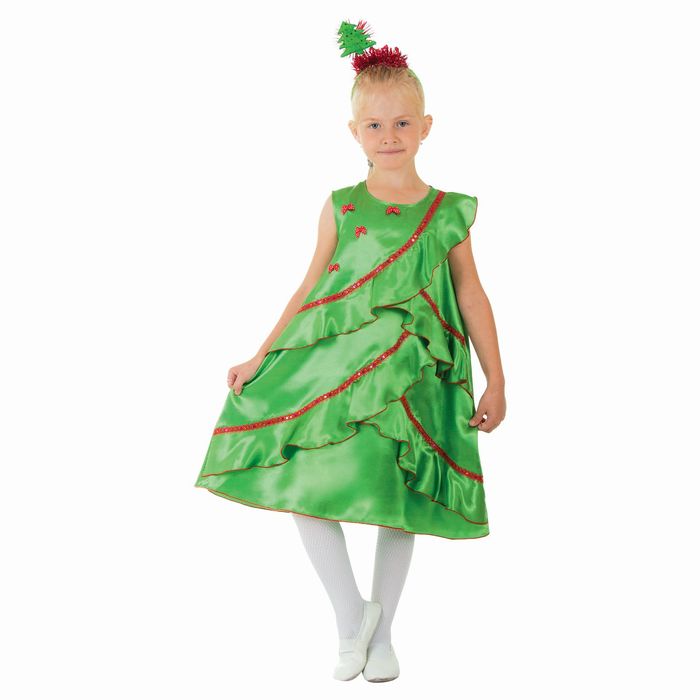 Карнавальный костюм «Ёлочка атласная», платье, ободок, р. 30, рост 116 см сделает вашу малышку самой нарядной на любом празднике! Яркое платье расшито красной тесьмой. Креативный ободок с фигуркой хвойного деревца дополнит зимний образ и украсит причёску.