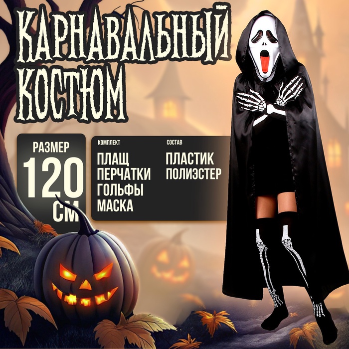 Этот костюм подходит как для взрослых, так и для детей, и станет отличным выбором для тех, кто хочет создать запоминающийся образ на Хэллоуине. Необычный дизайн, качественные материалы и соответствие тематике помогут произвести сильное впечатление на всех гостей праздника.