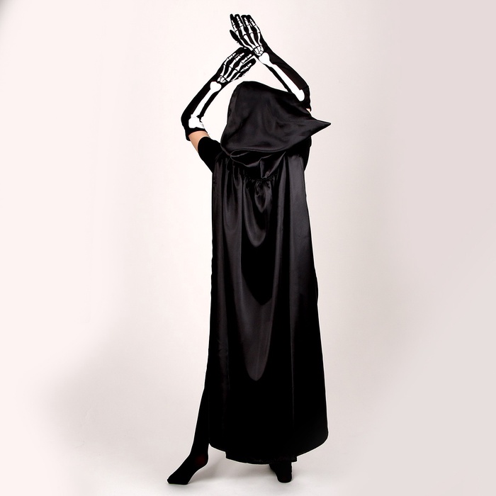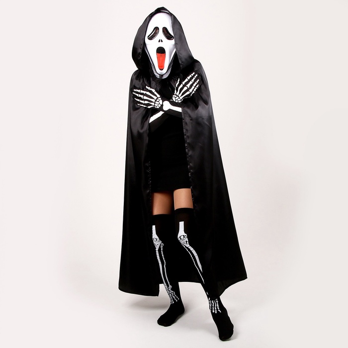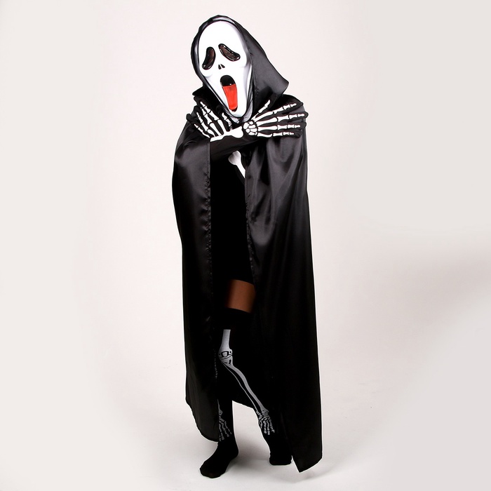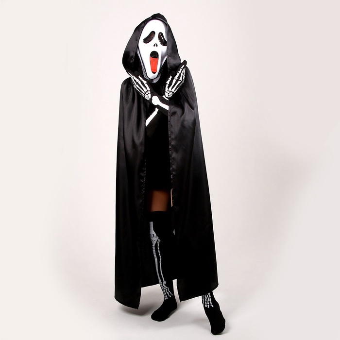 - Длина плаща — 120 см. Плащ создаёт загадочный и таинственный образ, добавляет элегантности и завершённости, что позволяет выглядеть как персонаж из фильмов ужасов.