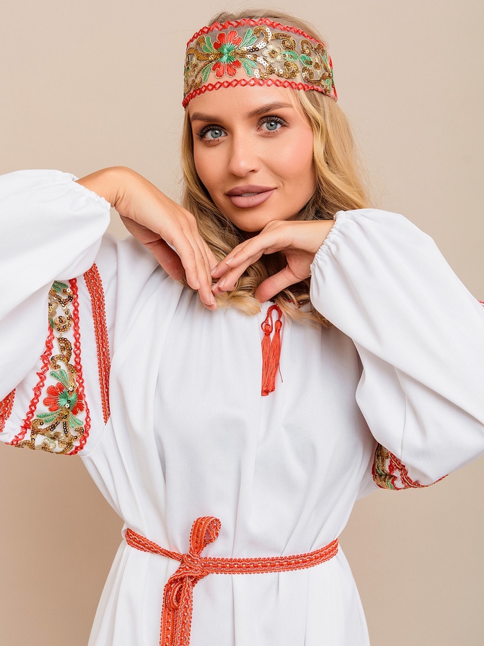 Карнавальный костюм "Купава" платье-рубашка взрослая (платье-рубашка, повязка на голову) размер 164/
