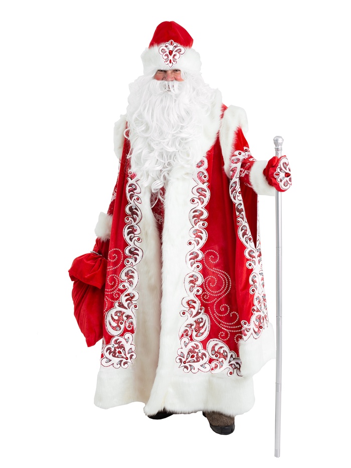 Карнавальный костюм новогодний «Дед Мороз Боярский», рубаха, шуба, шапка, варежки, мешок, парик, борода, посох