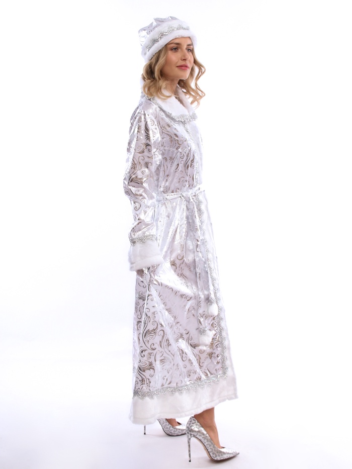 Карнавальный костюм "Снегурочка" (шуба, шапка, варежки, пояс) размер 164-48-50