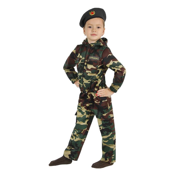 Карнавальный костюм «Спецназ», куртка с капюшоном, брюки, берет, рост 110 см превратит юную леди в отважную военнослужащую! Дизайн костюма максимально приближён к форме войск специального назначения. Высококачественный материал (хлопок 50 %, полиэстер 50 %) обеспечивает идеальную посадку и не сковывает движения. Капюшон убережёт маленькую патриотку от ветра, а берет, кокетливо сдвинутый набок, добавит изящества. Такой костюм идеально подойдёт к любому военному празднику и поможет воспитать у девочки патриотические чувства.
