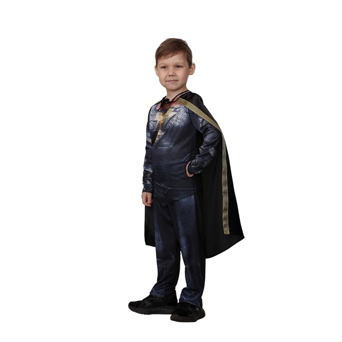 Карнавальный костюм Чёрного Адама создан для маленьких супергероев, готовых перевоплотиться в мощного и таинственного персонажа из комиксов. Крой наряда позволяет ему красиво и комфортно сидеть по фигуре.