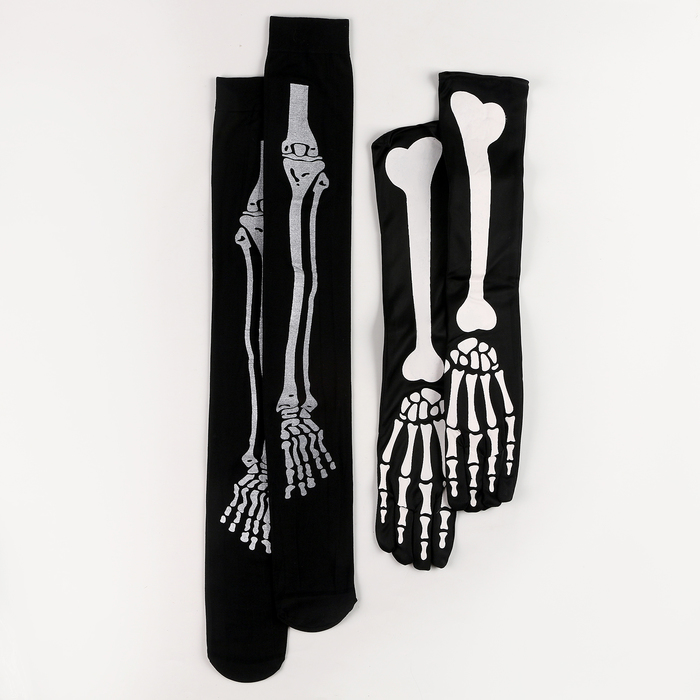 Карнавальный набор «Кости» включает гольфы и длинные перчатки, идеально подходящие для создания эффектного образа на Хэллоуин или костюмированную вечеринку. Этот набор добавит вашим нарядам загадочную атмосферу, подчёркивая тематику костюма.