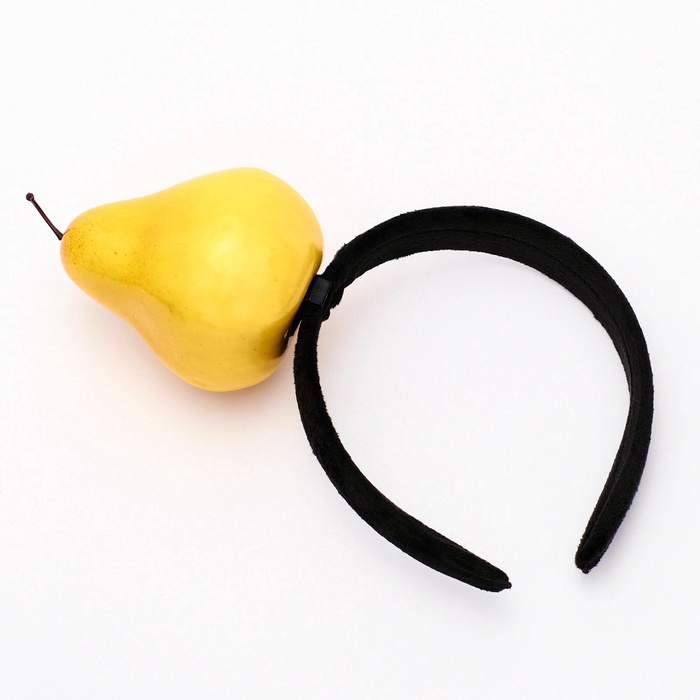 - Ободок. Стильный и мягкий ободок станет ярким акцентом в образе. На нём изображена яркая спелая груша. Ободок универсального размера, подойдёт для большинства детей.