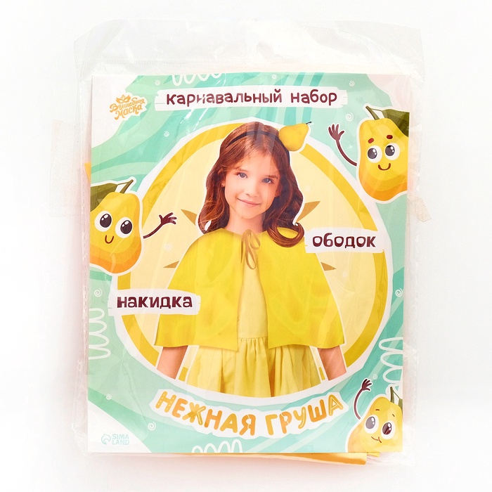 Яркий и летний карнавальный набор «Нежная груша» — это отличная возможность для вашего ребёнка окунуться в атмосферу веселья и праздника. Набор состоит из двух основных элементов: накидки и ободка.