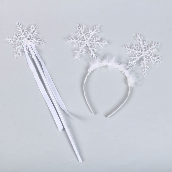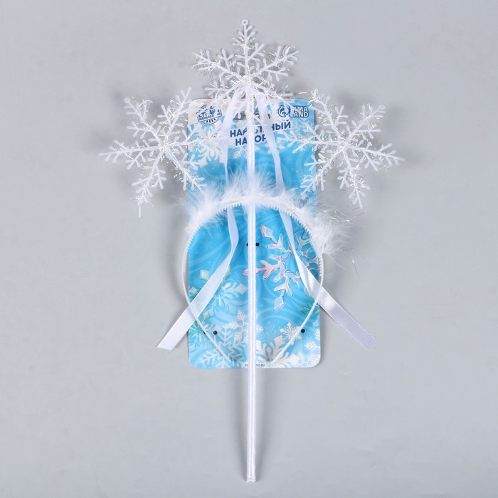 Карнавальный набор «Снегурочка» – это идеальный выбор для создания волшебного и праздничного образа. В комплект входят ободок и жезл, которые декорированы снежинками, искусственным мехом и лентами. Эти аксессуары помогут вам или вашему ребенку легко превратиться в любимого зимнего персонажа и подарить окружающим атмосферу сказки.