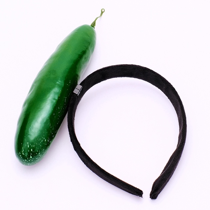 - Ободок. Стильный и мягкий ободок с объёмным изображением огурца станет завершающим штрихом костюма. Яркий и красочный, он привлечёт внимание всех окружающих.