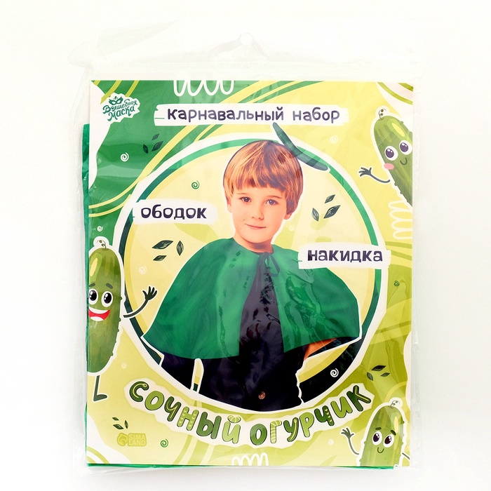 Карнавальный набор «Сочный огурчик» превратит вашего ребёнка в самого необычного гостя на любом осеннем празднике. Набор состоит из двух основных элементов: накидки и ободка.