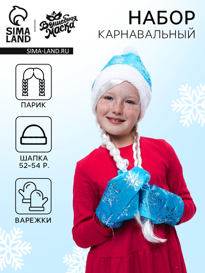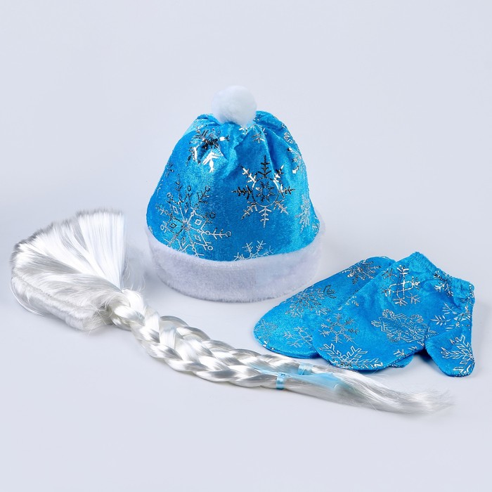 Карнавальный новогодний набор «Волшебная снегурочка»: шапка, варежки, парик с косичками, р. 52-54 см