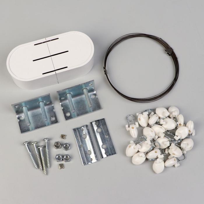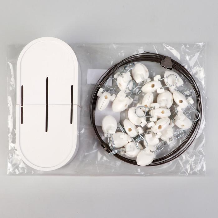 Струнный карниз состоит из металлической струны и кронштейнов, которые крепятся на потолок. Тросовый карниз применяется для лёгких штор и тюля. В комплект входят крепления и зажимы для штор. Струну можно обрезать до любой необходимой длины.