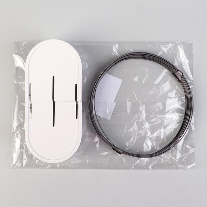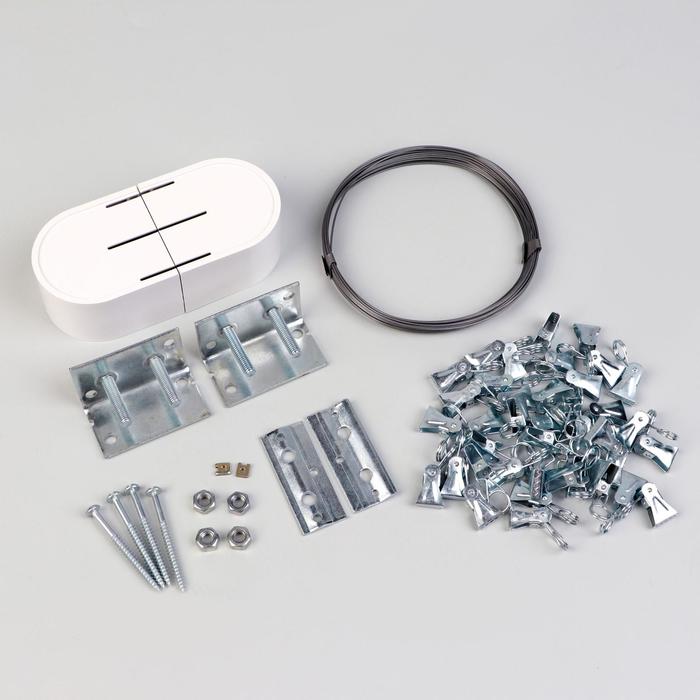 Струнный карниз состоит из металлической струны и кронштейнов, которые крепятся на потолок. Тросовый карниз применяется для лёгких штор и тюля. В комплект входят крепления и зажимы для штор. Струну можно обрезать до любой необходимой длины.