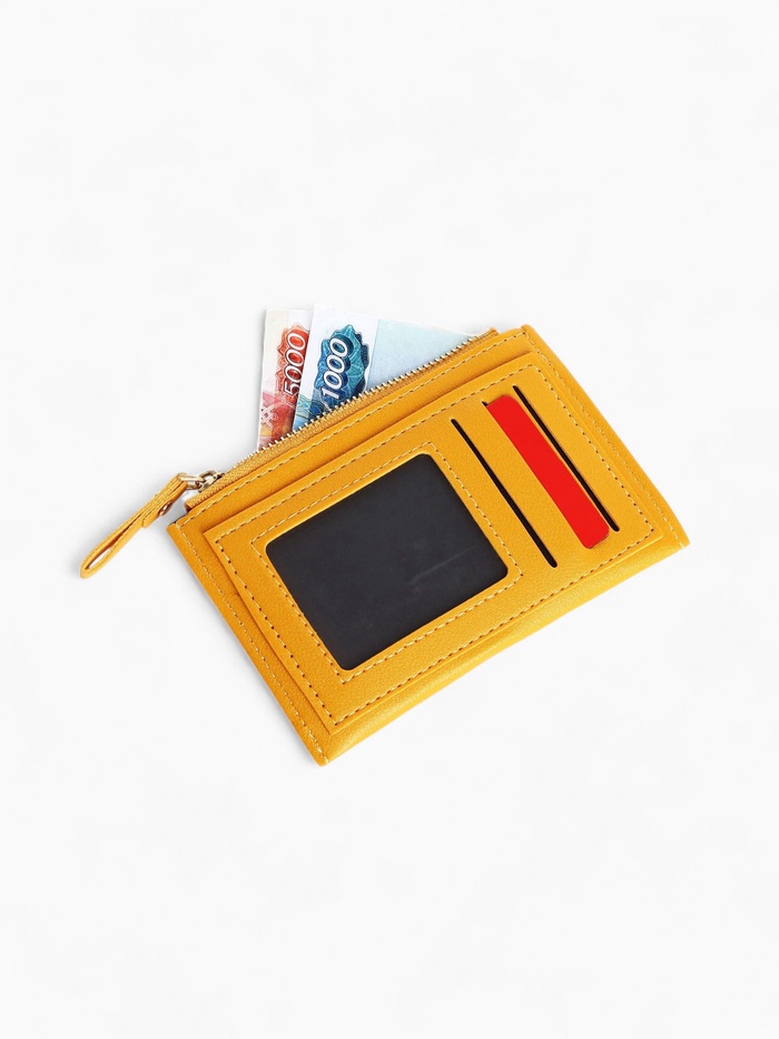 Картхолдер с монетницей на молнии, на 3 карты, с окошком, жёлтый