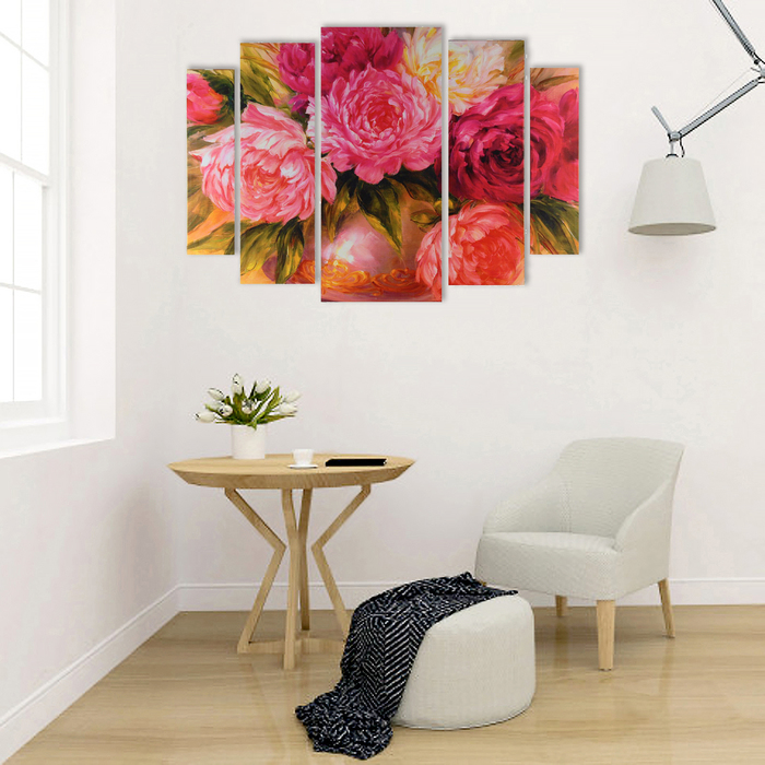 Картина модульная на подрамнике "Пионы в вазе" 2-14х53, 2-21х69,5 1-34х79; 80х118см