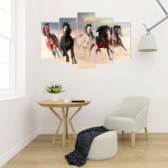 Картина модульная на подрамнике "Скакуны" (2-25х50, 2-25х67, 25х80 см) 125х80 см