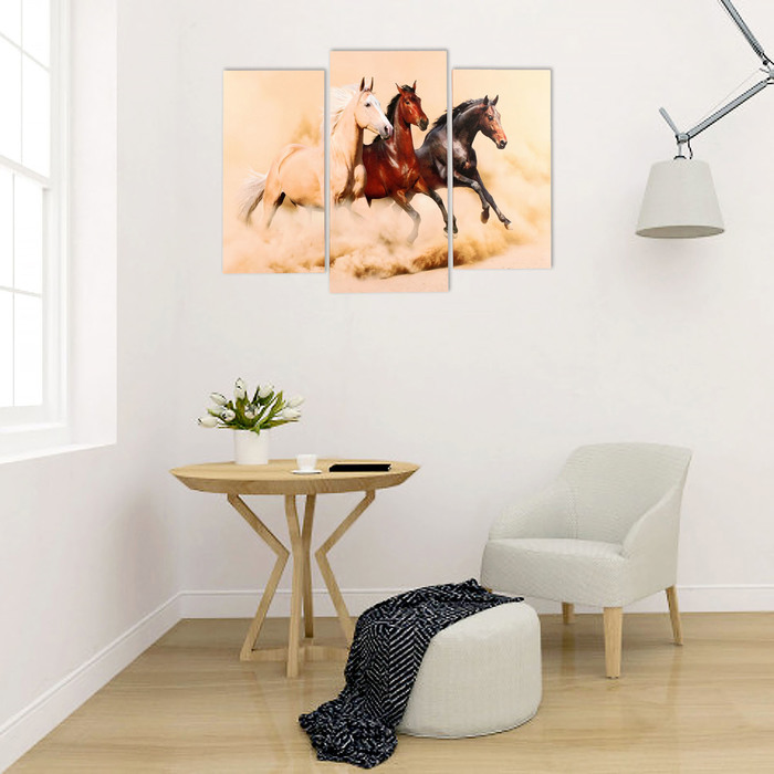 Картина модульная на подрамнике "Скакуны" (2-25х50, 30х60 см) 80х60 см