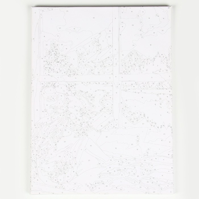 - Холст разделён на множество мелких фрагментов, на каждом указано число, соответствующее цвету, которым нужно закрасить данный участок.