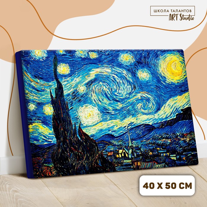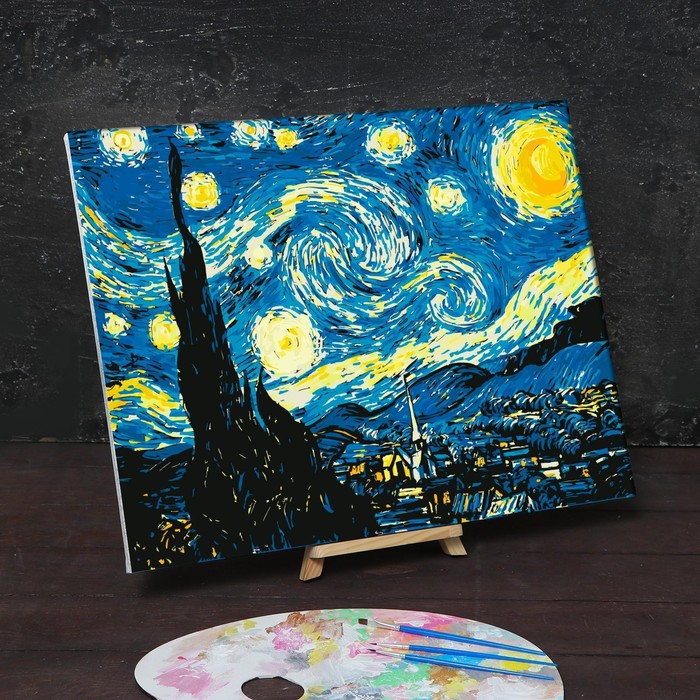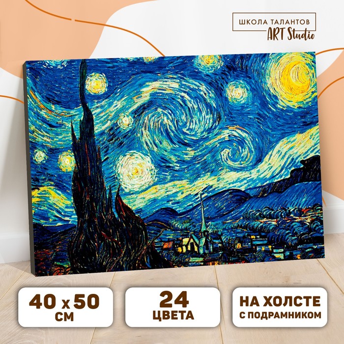 Картина по номерам на холсте с подрамником «Звёздная ночь» Винсент ван Гог 40 × 50 см понравится и детям, и взрослым.