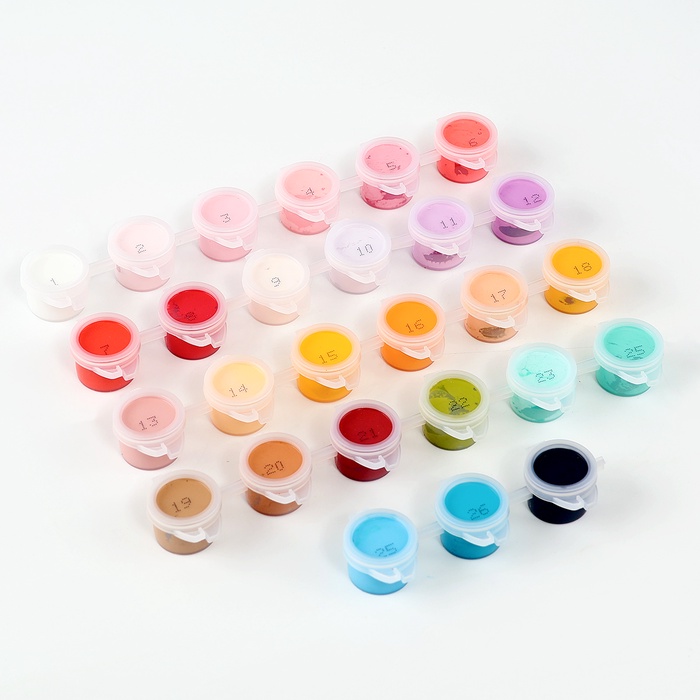- В набор входят все необходимые оттенки красок. Баночки пронумерованы.