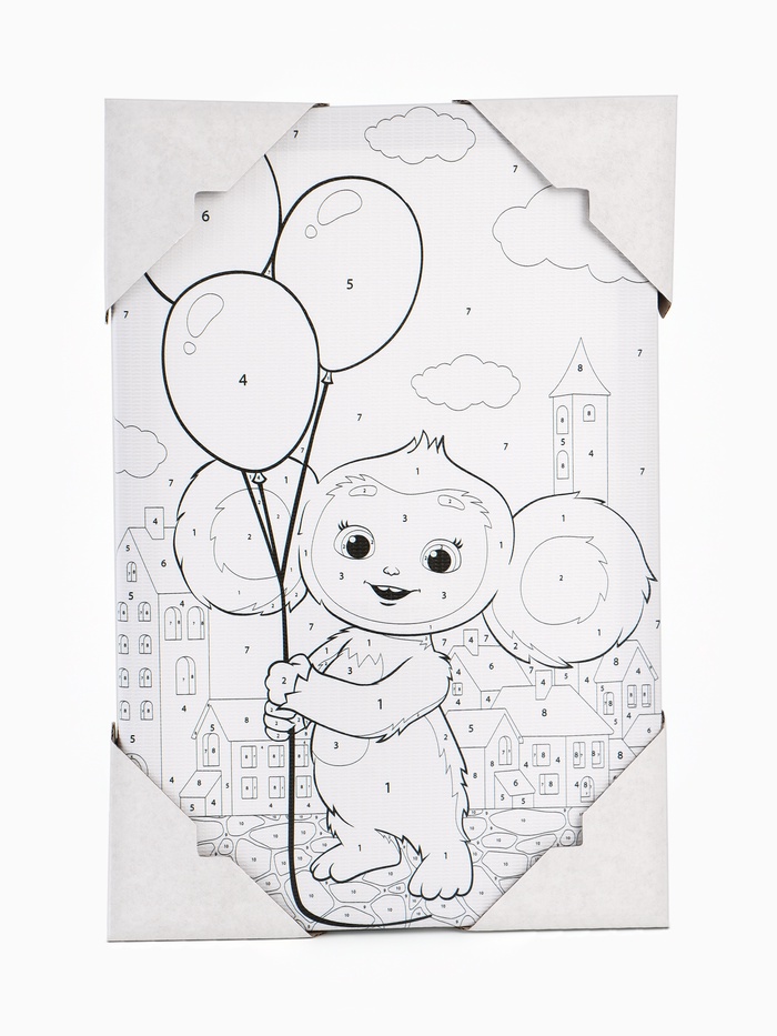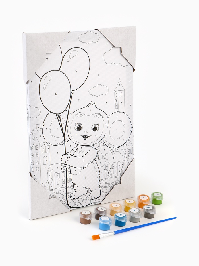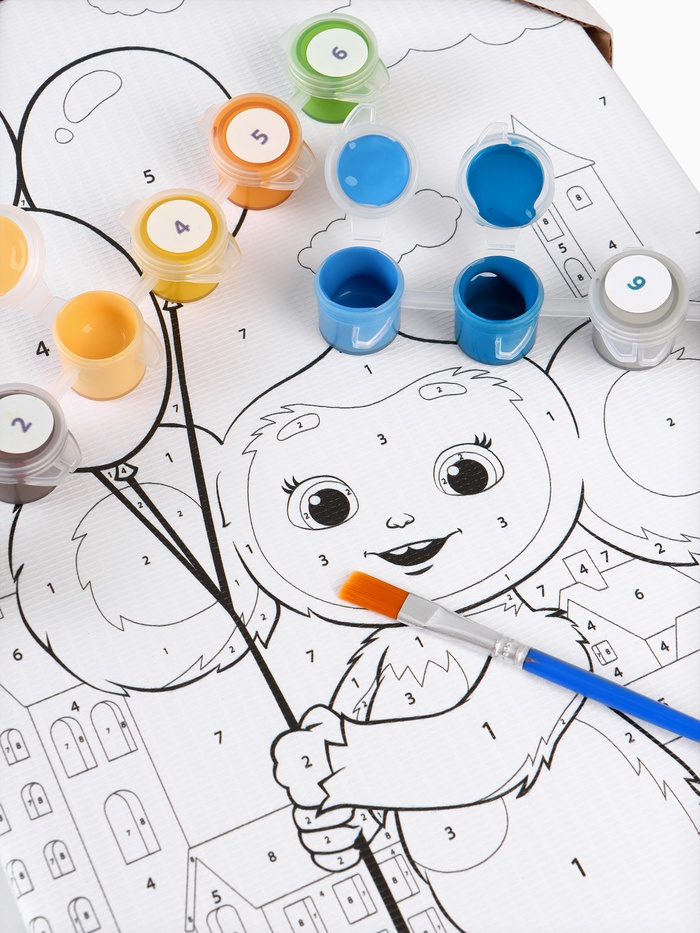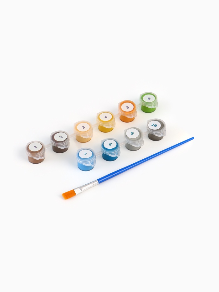 На холст нанесена схема, где пронумерован каждый сектор. Номер — цвет, написанный на баночке с краской. Нужно только раскрасить каждый сектор в соответствующий цвет.