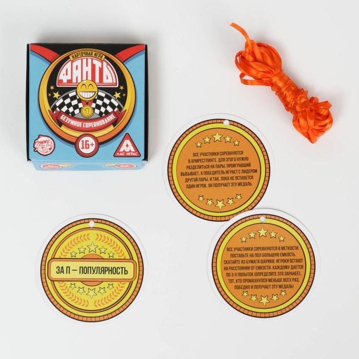 Фанты — это универсальное решение для любого праздника или посиделки с друзьями. Внутри вас ждут 20 умопомрачительных заданий, которые помогут проверить, кто из вас самый-самый, а также получить за это медали! Просто вытягивайте карточки и выполняйте задания.