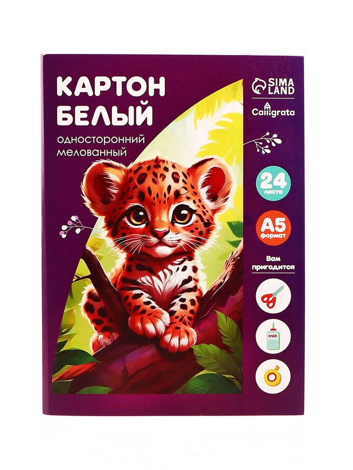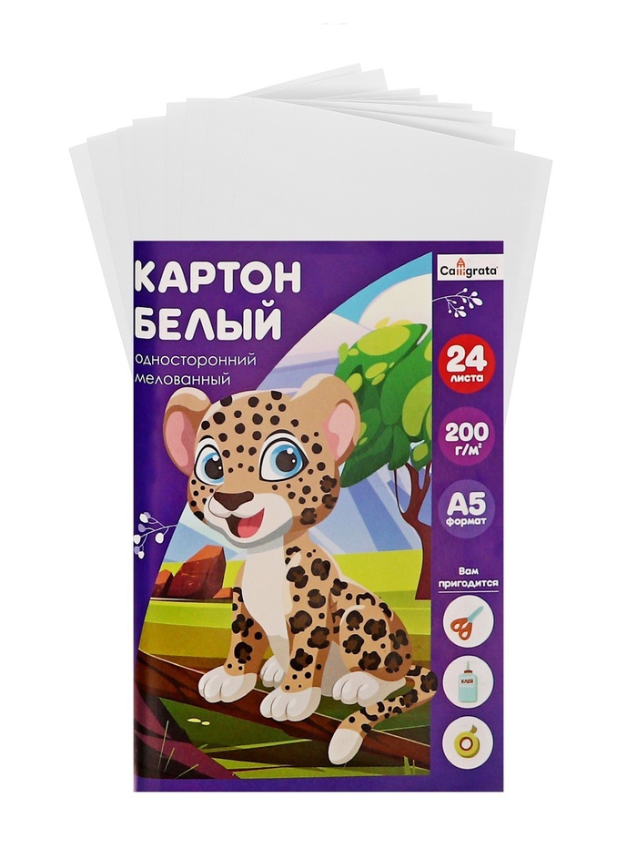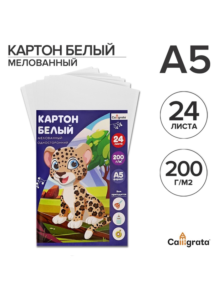 Картон белый А5, 24 листа Calligrata, мелованный, плотность 200 г/м2, в папке