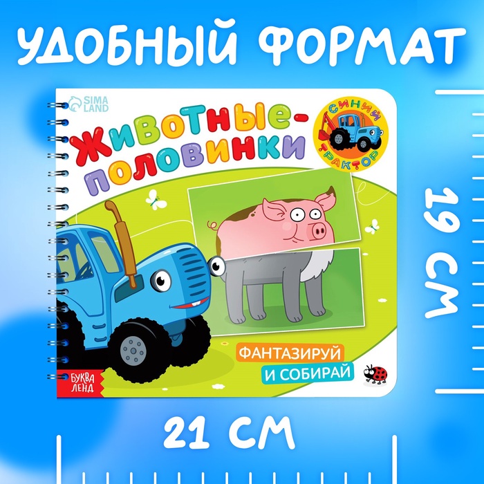 - На страничках вы найдёте познавательные стихи про зверушек и яркие иллюстрации из мультфильма «Синий трактор».