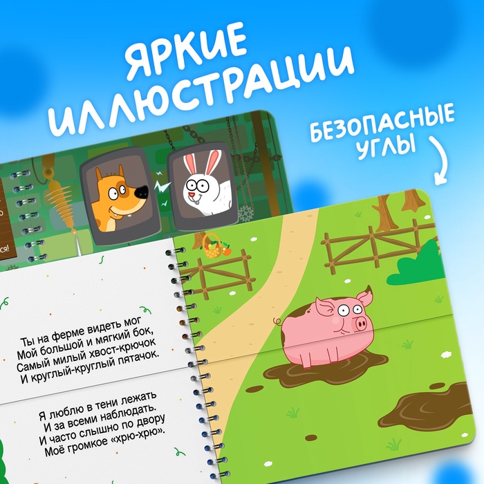 - У книги безопасные закруглённые углы, поэтому с ней может заниматься даже ребёнок от 1 года.