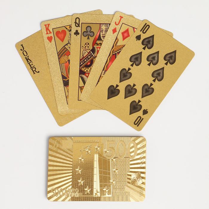 Выбирайте карты игральные пластиковые «500 евро», колода 54 шт., 8.7×5.7 см, золотистые, в шкатулке и наслаждайтесь любимой игрой.