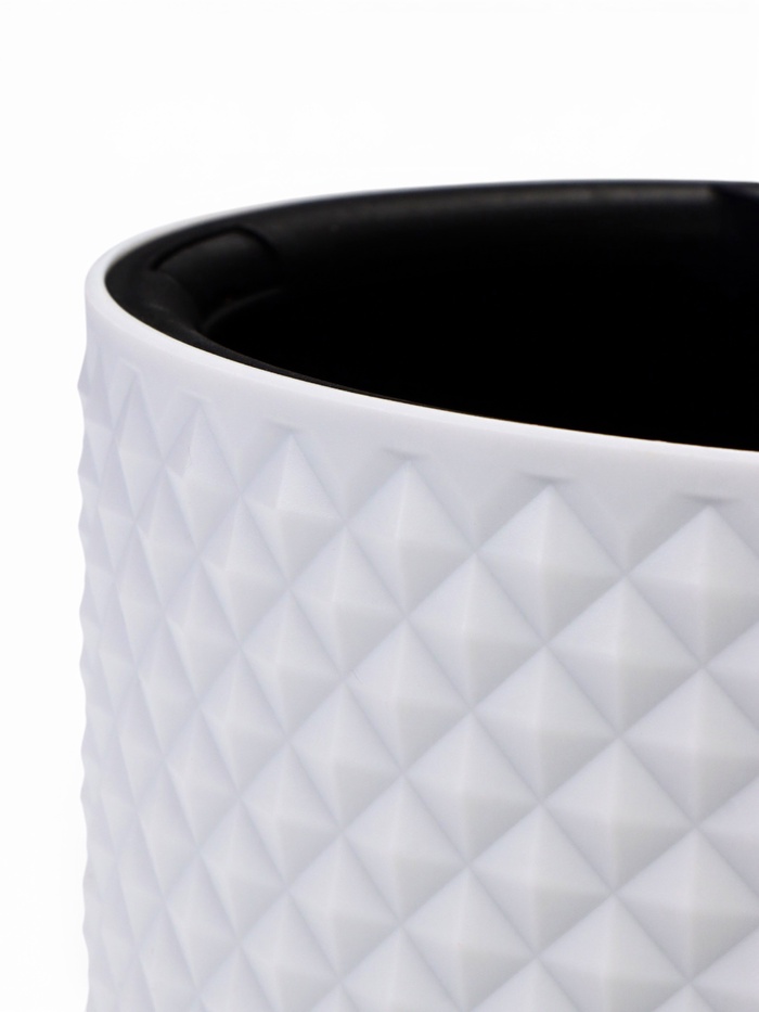 - Белый цвет: поверхность с объёмным узором кашпо современности. Цвет визуально сохраняет чистоту и хорошо сочетается с различными текстурами.