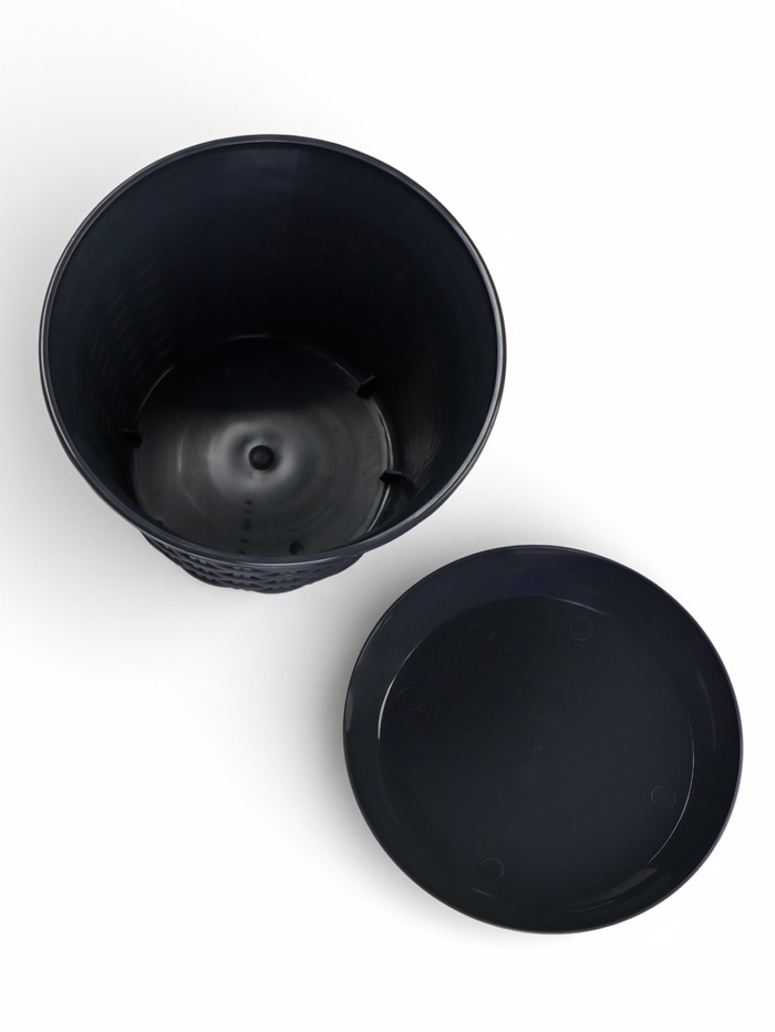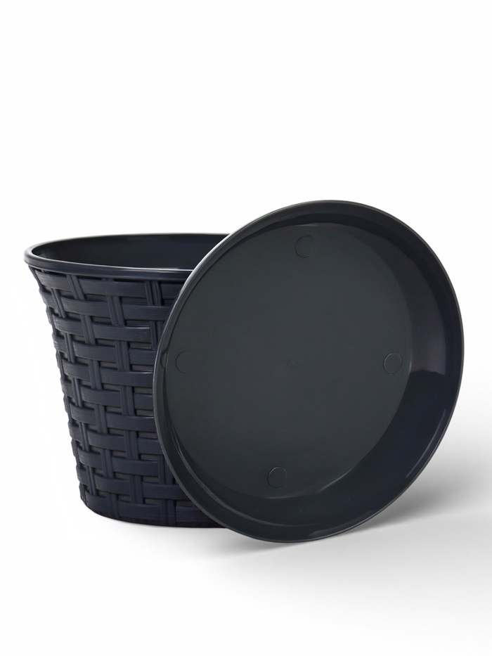 Кашпо для цветов «Ротанг», 4 л, d=22.2 см, h=16.6 см, пластиковое, с поддоном, серое