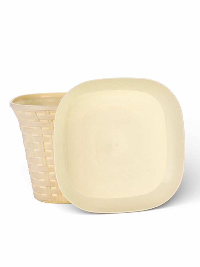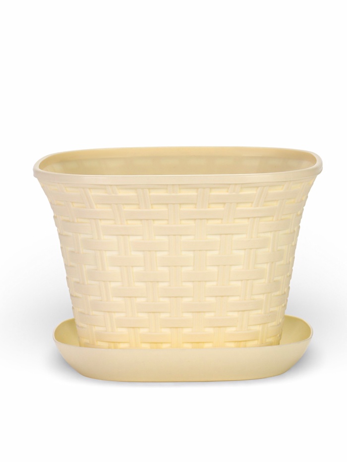 Кашпо «Ротанг» бежевое 3.4 литра с поддоном — это вместительная декоративная ёмкость для комнатных растений. Пластиковое кашпо имитирует фактуру натурального плетения, создавая эффект ручной работы в современном интерьере.