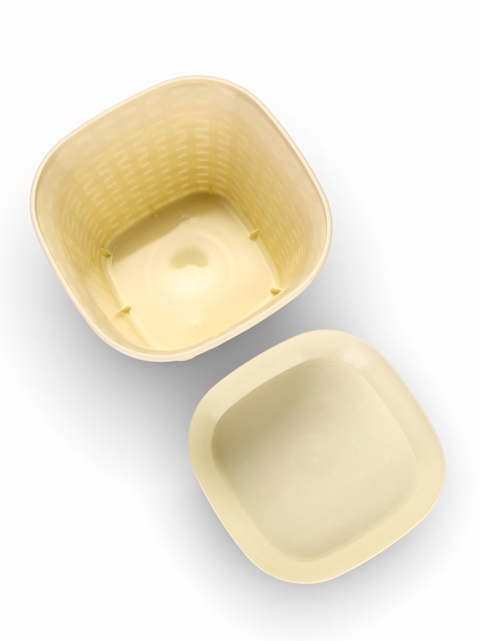 - Пластик: прочный и влагостойкий материал обеспечивает долгий срок службы, кашпо легко мыть и перемещать благодаря малому весу.