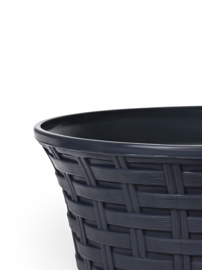 Кашпо для цветов «Ротанг», 8 л, d=27.5 см, h=20.5 см, пластиковое, с поддоном, серое