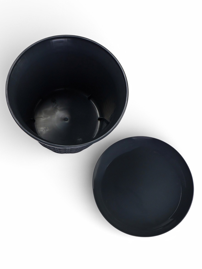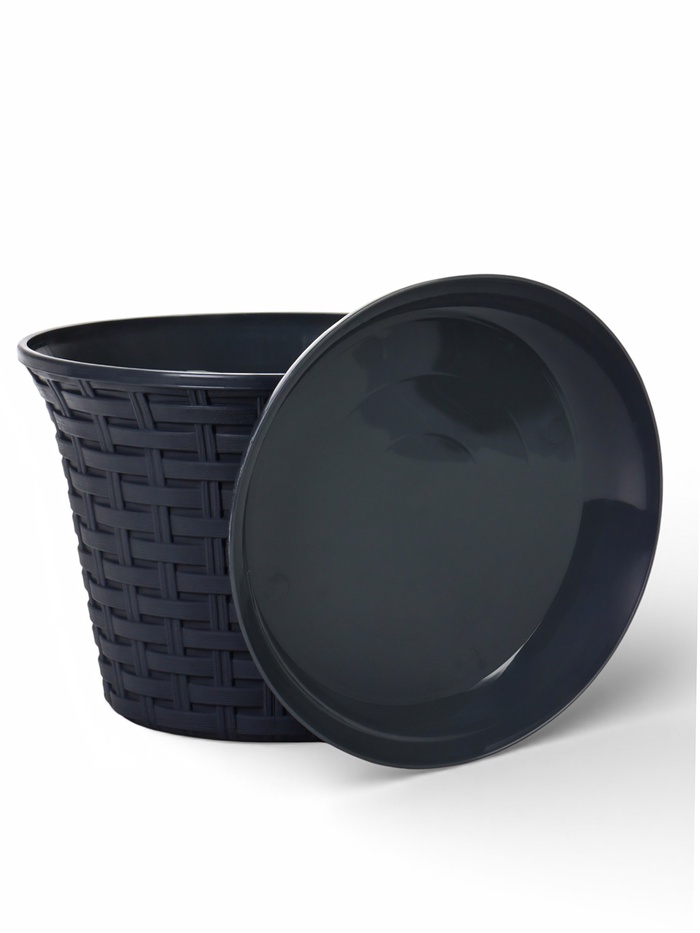 Кашпо для цветов «Ротанг», 4 л, d=22.2 см, h=16.6 см, пластиковое, с поддоном, серое