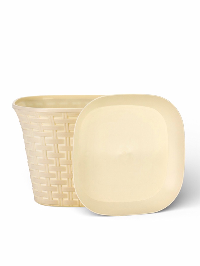 Кашпо «Ротанг» 4.6 л бежевое с поддоном — это просторная декоративная ёмкость для комнатных растений. Фактура плетения и форма добавляют изыска и отлично вписываются в обстановку, где важны детали.
