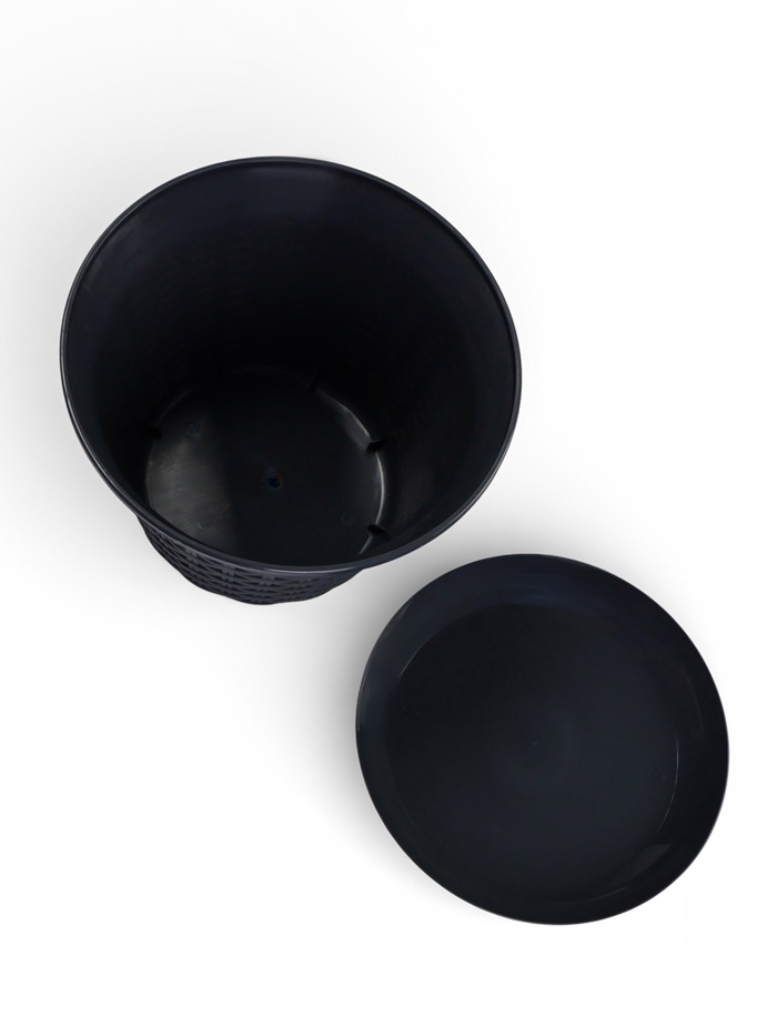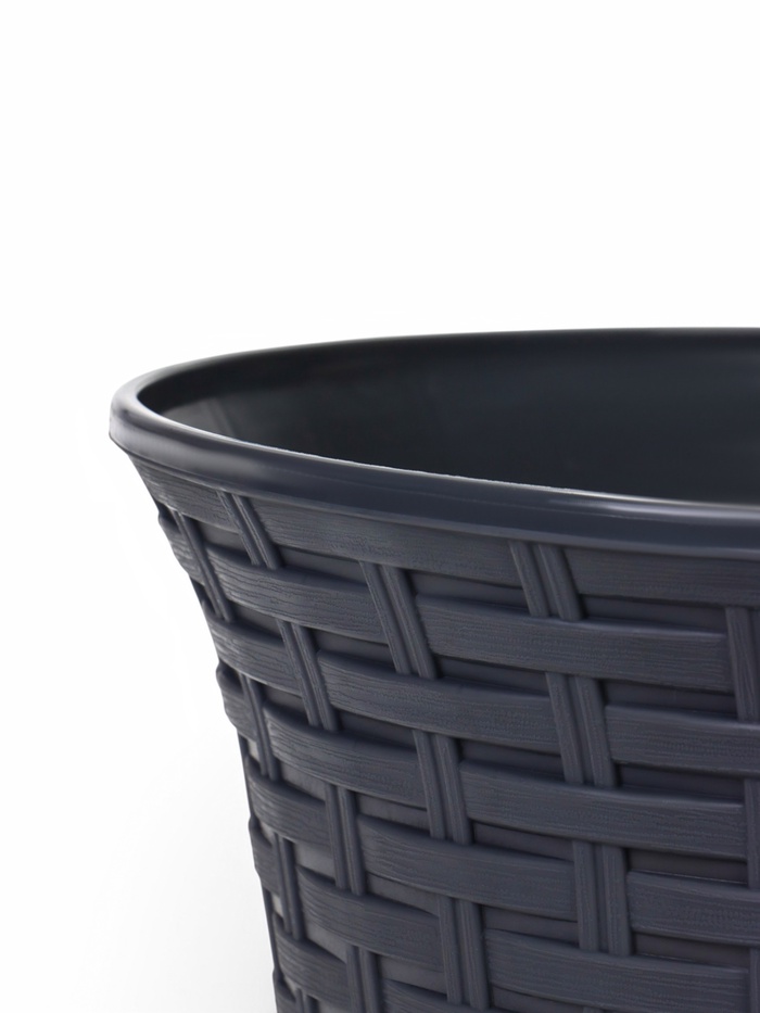 Кашпо для цветов «Ротанг», 6.1 л, d=25.5 см, h=18.9 см, пластиковое, с поддоном, серое