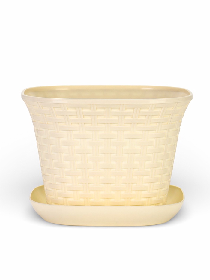 Кашпо с поддоном «Ротанг», 6.9 л, бежевое — это практичное и стильное решение для ваших комнатных растений. Изделие сочетает в себе натуральную эстетику плетёного ротанга с современными преимуществами лёгкого и прочного пластика.