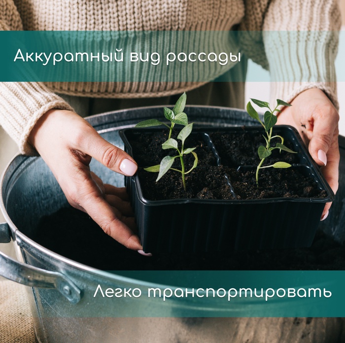 Для крупной рассады: кассета подходит для растений, которые формируют объёмную корневую систему. Единый поддон упрощает полив, а прочные стенки ячеек сохраняют форму при перемещении. Решение оптимально для садоводов, которые ценят качество рассады и предпочитают минимизировать стресс для растений при пересадке.